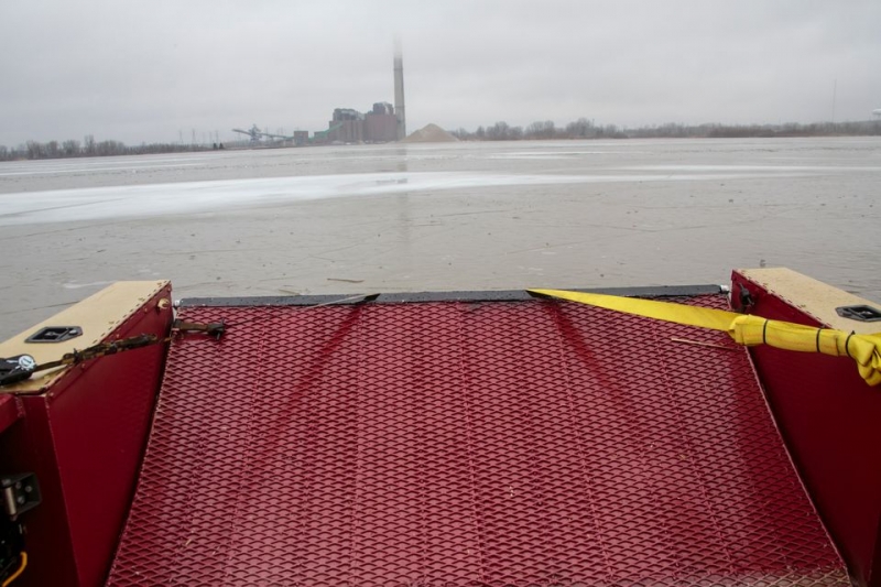 The firefighters had taken the boat out onto Muskegon Lake, testing its capabilities to cruise over ice and open water. They kept a wary eye on the fishermen near the North Muskegon shore, knowing the ice their boat was cutting through on the lake was only a few inches thick.